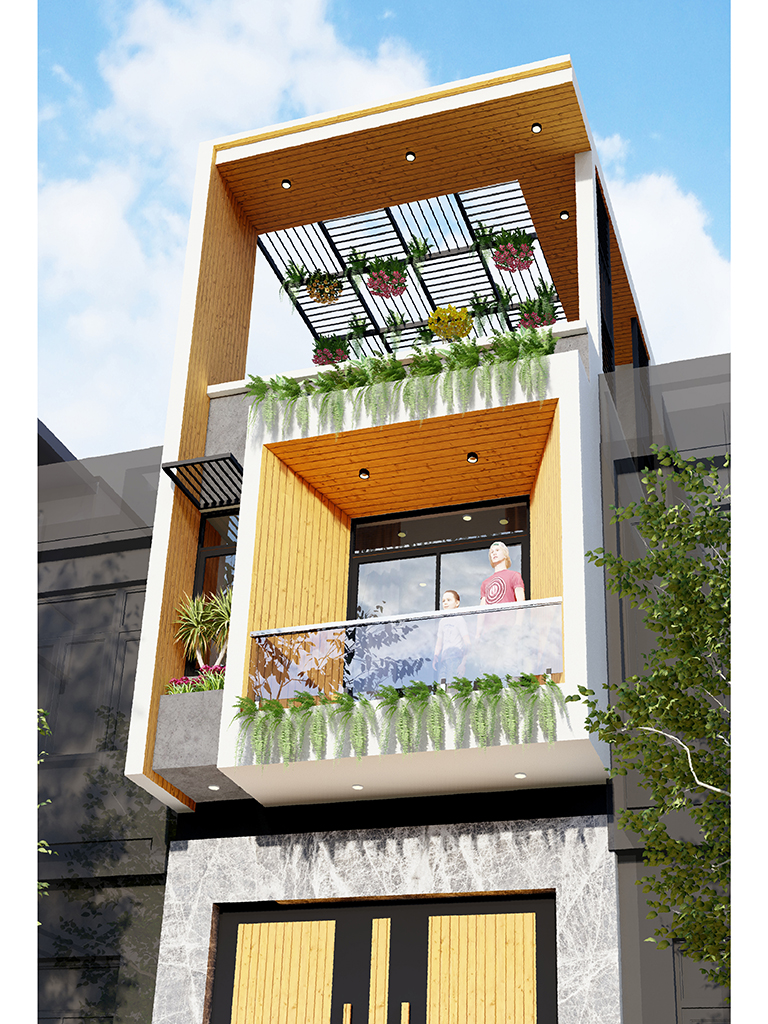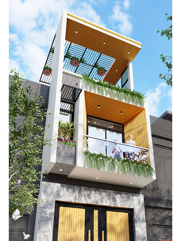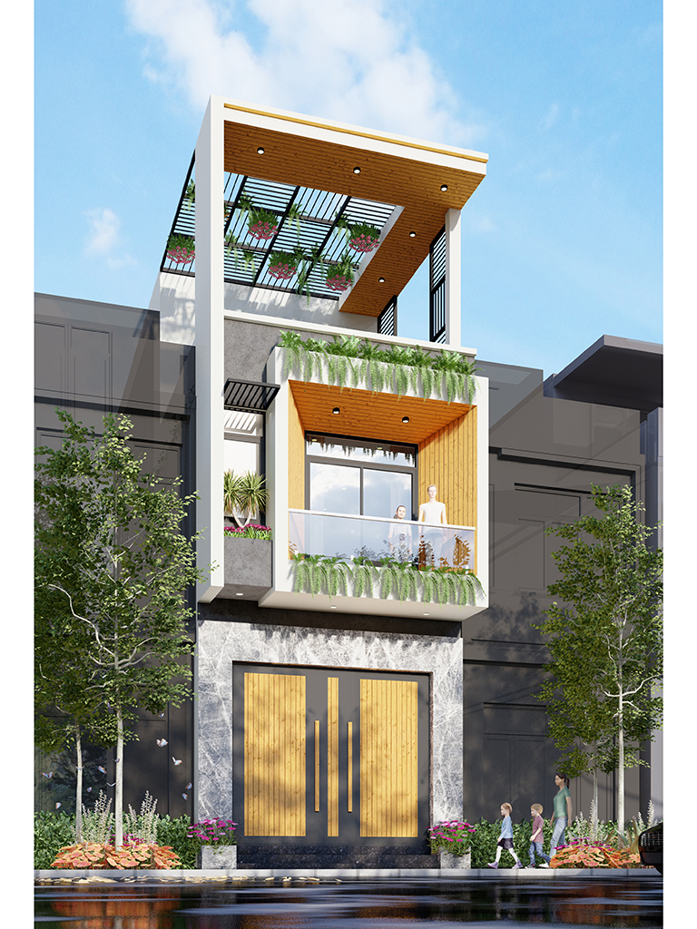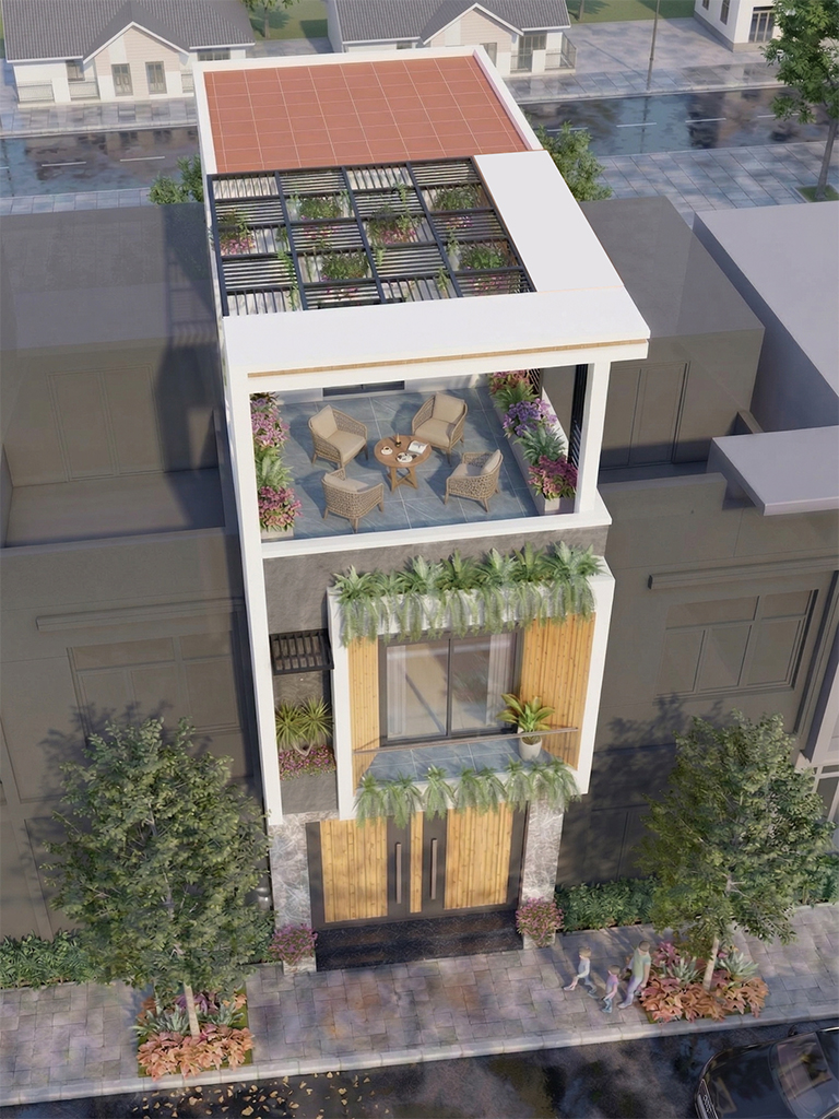 Tầng 2 là không gian nghỉ ngơi riêng tư gồm 2 phòng ngủ khép kín. Phòng ngủ 1 phía trước sở hữu ban công xanh và khu vực thay đồ riêng biệt, mang lại trải nghiệm tiện nghi như khách sạn. Phòng ngủ 2 phía sau cũng có vệ sinh riêng và tầm nhìn thoáng qua hệ cửa kính điểm xuyết mái kính cường lực. Đặc biệt, khoảng Thông tầng giữa nhà giúp đối lưu không khí và ánh sáng xuyên suốt các tầng, loại bỏ hoàn toàn sự bí bách thường thấy của nhà ống.